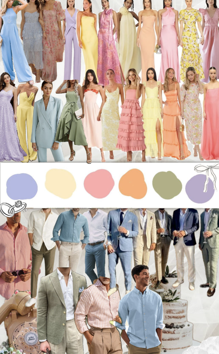 We ask that men wear a button up shirt (tie and jacket optional). Women wear long dresses with florals or pastels. Colours and patterns are encouraged! Think of a formal garden party.